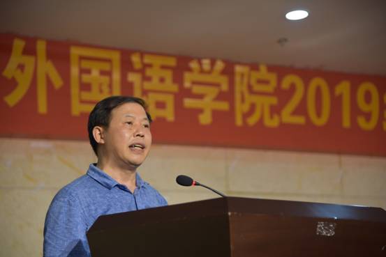 学院党委文旭教授讲话,对2019级新生表示热烈欢迎,发言中他提到“interpersonal——把知识和能力变成智慧,与各色各样的人打交道”、“independent——培养个人的独立性,学会独立学习,独立思考”。文书记还希望每一位青年学习者都能正确运用“Head, Hand, Heart ”去追求理想,坚守自我,怀揣感恩之心,做有担当有抱负的时代青年,用智慧与青春演绎大学生活;教师代表韩潮提到“upwards、inwards、forwards、 backwards”,以幽默诙谐的语言告诫大家努力攀登、内外兼修,希望同学们珍惜学习时光,并送上诚挚的祝福;在读研究生代表秦秋晴结合自身学习经历,以金庸先生刻苦求学的例子,鼓励新生努力上进,无悔青春;在读本科生代表矫彤帅通过专业学习和综合素质拓展的成功经历,与大家分享宝贵的经验,并提醒大家把握学习机会,不畏奋斗;研究生新生代表高萌徽也表示要与大家共同努力,做到严于律己,有目标、有朝气;本科新生代表蔡虹西在发言中立志承担责任与使命,做到贯彻中西,文理并蓄。