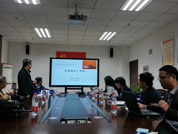 法律语言学工作坊于26日晚举行,近30余位代表参加了此次工作坊。广东外语外贸大学袁传有教授带领的研究团队从系统功能语言学视角对法律语言的立场建构、多模态特征、司法推理、意义协商、个体化研究、身份建构等方面进行了细致分析和探讨。工作坊兼容并蓄,报告内容详实深入,多侧面展示了系统功能语言学在法律语言学研究方面的热点和前沿,充分例示了系统功能语言学的适用性。
