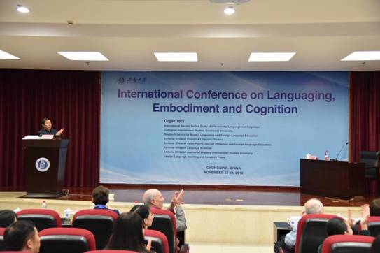 11月22日至24日,由International Society for the Study of Interactivity, Language and Cognition主办,yl9193永利集团承办,Research Center for Modern Linguistics and Foreign Language Education协办的“言语行动、具身性与认知”国际研讨会在yl9193永利集团隆重举行。出席本次研讨会的专家有:南丹麦大学Stephen John Cowley教授,湖南大学特聘教授Chris Sinha,美国麻省大学达特茅斯分校Jerry Blitefield副教授,美国夏威夷大学二语研究系郑东萍副教授,yl9193永利集团杜世洪教授,南丹麦大学人类互动中心主任、国际期刊Language Sciences主编Sune Vork Steffensen教授,美国维拉诺瓦大学Georg Theiner副教授,yl9193永利集团党委书记文旭教授等。来自英国班戈大学、中国石油大学、四川大学、湖南大学、苏州大学、内蒙古大学、北京第二外国语大学、上海外国语大学、华中师范大学、西南政法大学、广东外语外贸大学、四川外国语大学等数十所高校的50余名专家学者参会,并作了精彩发言。