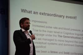 主旨报告后,“言语行动、具身性与认知”国际研讨会闭幕式隆重举行。南丹麦大学Sune Vork Steffensen教授对本次研讨会作总结发言,充分肯定了此次研讨会所取得的成果。随后,Sune教授简要介绍了第五届“互动、语言与认知”研讨会,并热烈欢迎各位专家学者2020年赴波兰参会。最后,莫启扬教授致闭幕辞,对参与本次会议的学者和代表表示感谢,同时希望语言与认知研讨会能继续为学者们提供平等交流、自由讨论的契机,营造良好的学术氛围,进而推动语言认知研究的长足发展。