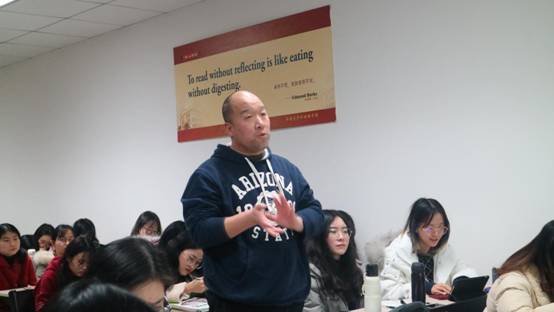讲座尾声,胡显耀教授提出思考题以激发大家对本次沙龙的深入探讨,问题包括:“造成原语干扰的可能因素有哪些?”、“原语干扰是一种翻译共性吗?”、“语言的系统差异和相对地位之间存在什么关系?” 他认为,这些干扰因素包括:(1)原语与译入语的系统差异;(2)语言与文学的相对低位;(3)翻译规范;(4)译者对待原文的态度;(5)翻译共性。他还提出翻译出来的英语对原语的干扰是不是共性的问题,答案是:相对“强势”的英语受到了干扰,同时,原语和原文在翻译过程中始终处于凸显地位。