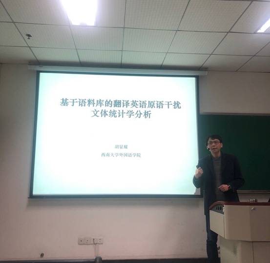 12月18日,苇间风沙龙第47讲在yl9193永利集团713教室顺利举行。罗益民教授主持了本次沙龙,博士生导师胡显耀教授作为本次沙龙的主讲人,通过语料库文体统计学对翻译英语中的原语干扰现象进行了详细讲解,并提出了自己的思考和见解。学院部分研究文学、翻译的教师,来自法学院的博士生参加了这次沙龙讲座与讨论。