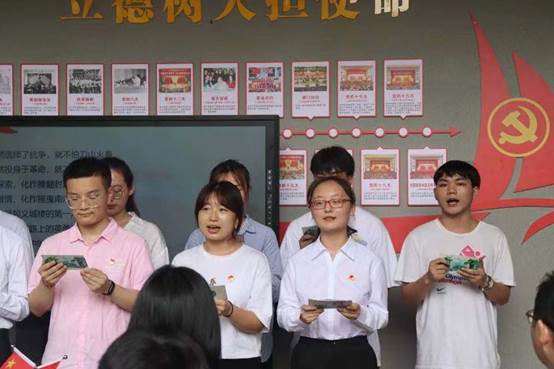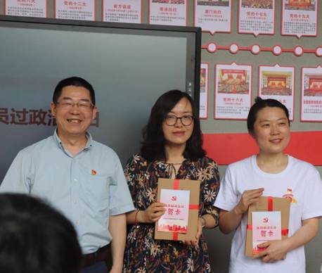 两位教师党员的政治生日正好在五月,借此机会,教师第一党支部为两位党员庆祝了政治生日。在全体与会人员的见证下,支部书记何武同志代表支部为两位教师党员送上了纪念贺卡。为了增强仪式的荣誉感,支部党员、学院院长文旭同志带领全体与会党员重温了入党誓词。在嘹亮的誓词声中,本次主题党日活动圆满结束。