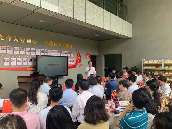 在集中领学结束后,与会党员进行了热烈的讨论。党员们们纷纷发言,与大家分享了自己的学习心得。学校党委组织部副处级组织员刘肃同志也加入到讨论分享中,与在场党员分享了自己的学习体会。他指出,此次主题党日集中学习环节形式新颖、内容丰富,让人耳目一新;理论解读生动具体,微故事讲解、诗歌朗诵让人动容,是一次成功主题党日活动的典范,相信在日常常态化推进党建工作的进程中,还有许多值得学习、借鉴的做法,学校、学院党委应该充分挖掘、充分展示,切实发挥榜样示范作用,以点及面带动学校基层党建工作质量整体提升。