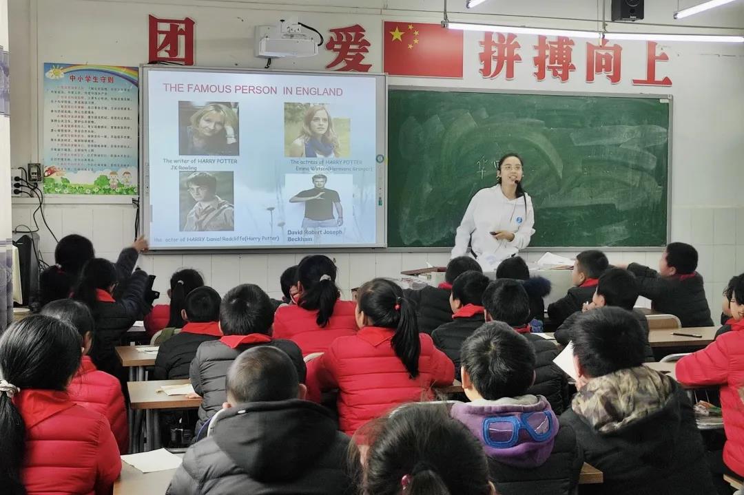 支教队员2020级英语语言文学专业黄小山通过世界地图生动有趣地介绍了世界各地,并具体讲述了英国的地理、人物、文化概况,让孩子们欣赏到了异国风情。课堂最后,黄老师又将话题引回到博大精深的中国文化,增强了孩子们对民族文化的认同感。整堂课让同学们明白了仰望星空,树立鸿鹄之志的同时,也要脚踏实地,努力学习为梦想筑牢基石。