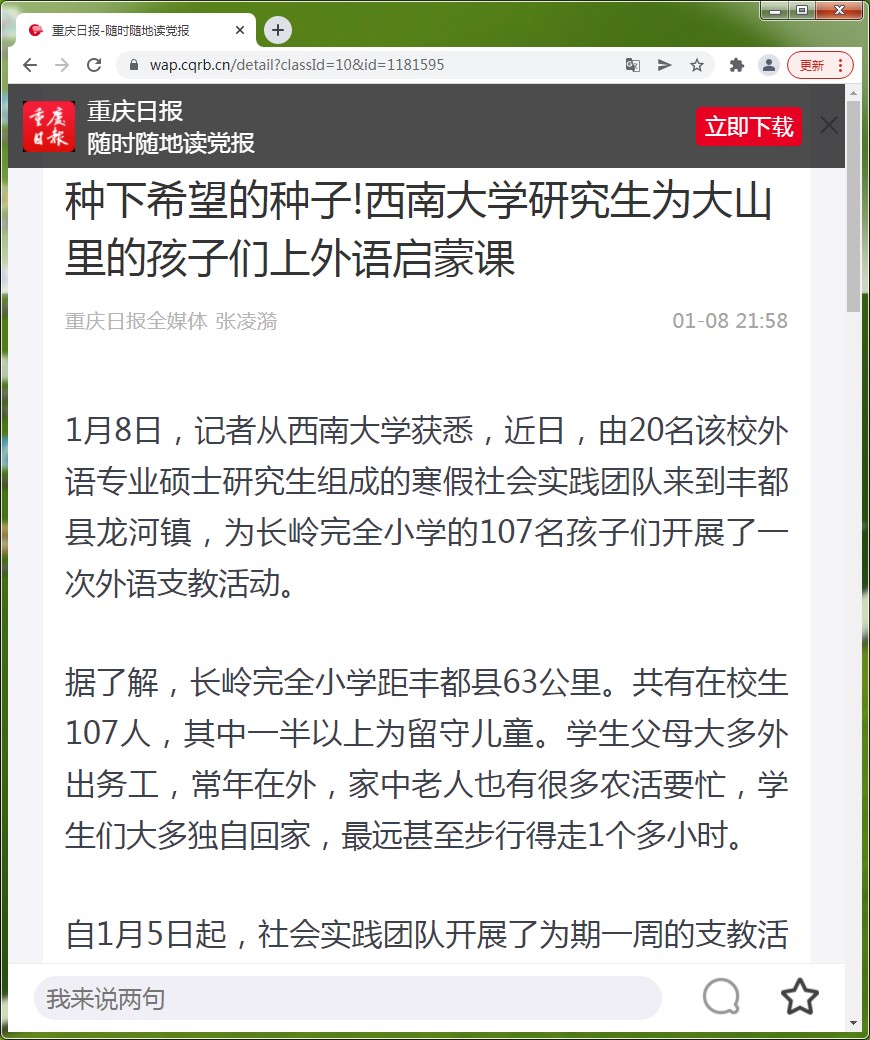 重庆日报:https://wap.cqrb.cn/detail?classId=10&id=1181595