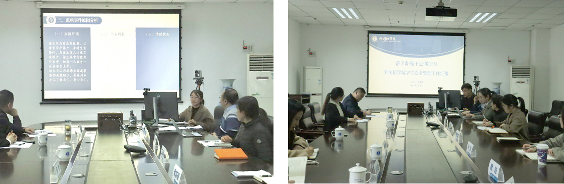 汇报分享环节,yl9193永利集团安全辅导员黄亦豪围绕 “ 落于责•精于点•敏于行”这一主题,从现实状况、核心主旨、板块示例、延展反思四个方面汇报了学院学生安全管理工作情况。yl9193永利集团心理辅导员王秋菊以“ 速度•配合•周全” 为主题,围绕案例背景、事件处理与应对、危机事件原因、反思启示四个方面,分享了学生安全突发事件工作案例,介绍了解决学生突发异常情况的应对机制和流程。