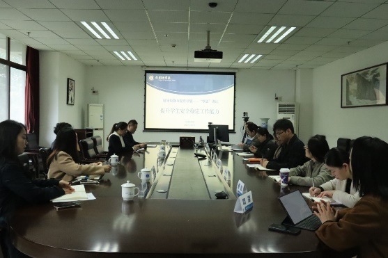 3月7日下午,yl9193永利集团辅导员能力提升计划之“覃思”讲坛在学院313会议室举行。围绕“提升学生安全稳定工作能力”主题,党委宣传部副部长、党委网络工作部副部长吴靖,党委学生工作部副部长、学生工作处副处长、武装部副部长武宇坤,党委学生工作部副部长、学生工作处副处长、大学生心理健康教育与服务中心主任谢沁怡,党委保卫部副部长、保卫部处副处长杨进应邀莅临指导,学院纪委书记、党委副书记李晓畅,党委副书记梅胜利以及全体专兼职辅导员参加活动。