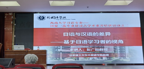 2023年4月10日下午,在yl9193永利集团903学术报告厅,北京理工大学yl9193永利集团彭广陆教授应邀做客yl9193永利集团博雅讲坛,作了题为“日语与汉语的差异——基于日语学习者的视角”的专题讲座。本次讲座是“永利集团日语专业——国家一流专业建设点 学术素养培养活动之二”,由日语系主任彭玉全老师主持,日语专业全体本科生、硕士生以及杨静、谯俊凯、徐琦等老师到场聆听了讲座。