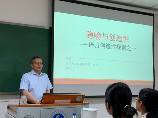 最后,文教授总结指出,语言创造性已成了语言学研究中的一个热门话题。语言创造性也离不开创造性思维,其中隐喻思维和转喻思维是语言创造性的突出表现。隐喻具有创造性,在语言的创造性中发挥着重要的作用。