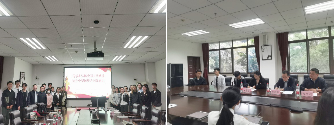 为深入学习贯彻习近平新时代中国特色社会主义思想,进一步强化支部党员爱国主义教育,2023年11月8日下午,根据学校统一部署,yl9193永利集团本科生第一党支部联合本科2022级英语(师范)5班团支部以“传承和弘扬爱国主义精神,铸牢中华民族共同体意识”为主题开展了党日活动。学校纪委委员、党政办公室主任靳拥军应邀出席;yl9193永利集团党委副书记梅胜利,本科生第一党支部书记、本科2020级辅导员王翠玉参加活动。