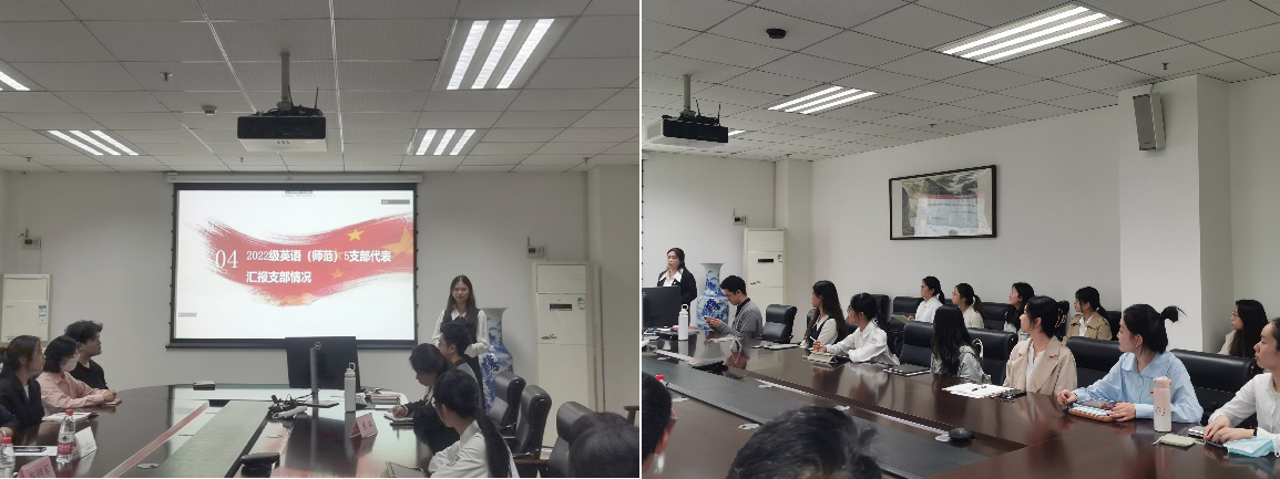 “团学汇报”环节,学院本科2022级英语(师范)5班团支部书记陈璐同学汇报了在专业学习、班团组织建设、活动实践等方面都取得了优秀的成绩,营造了扎实学风,建设了具有青春活力的优秀团支部。