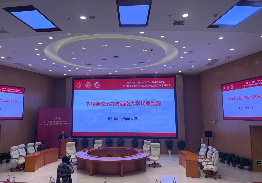 闭幕式上,谢周教授作为论坛下届承办方代表致辞。谢周教授对本届论坛取得圆满成功表示热烈祝贺,并衷心感谢《俄罗斯文艺》期刊编辑部、中国外国文学学会俄罗斯文学研究分会、湖南师范大学、北京大学出版社等为此次学术盛会所作出的重要贡献。谢周教授表示,2024年秋天,yl9193永利集团将以高标准热情迎接各位学者的到来,期待与中外学者在山城重庆、在永利集团共襄学术盛举。