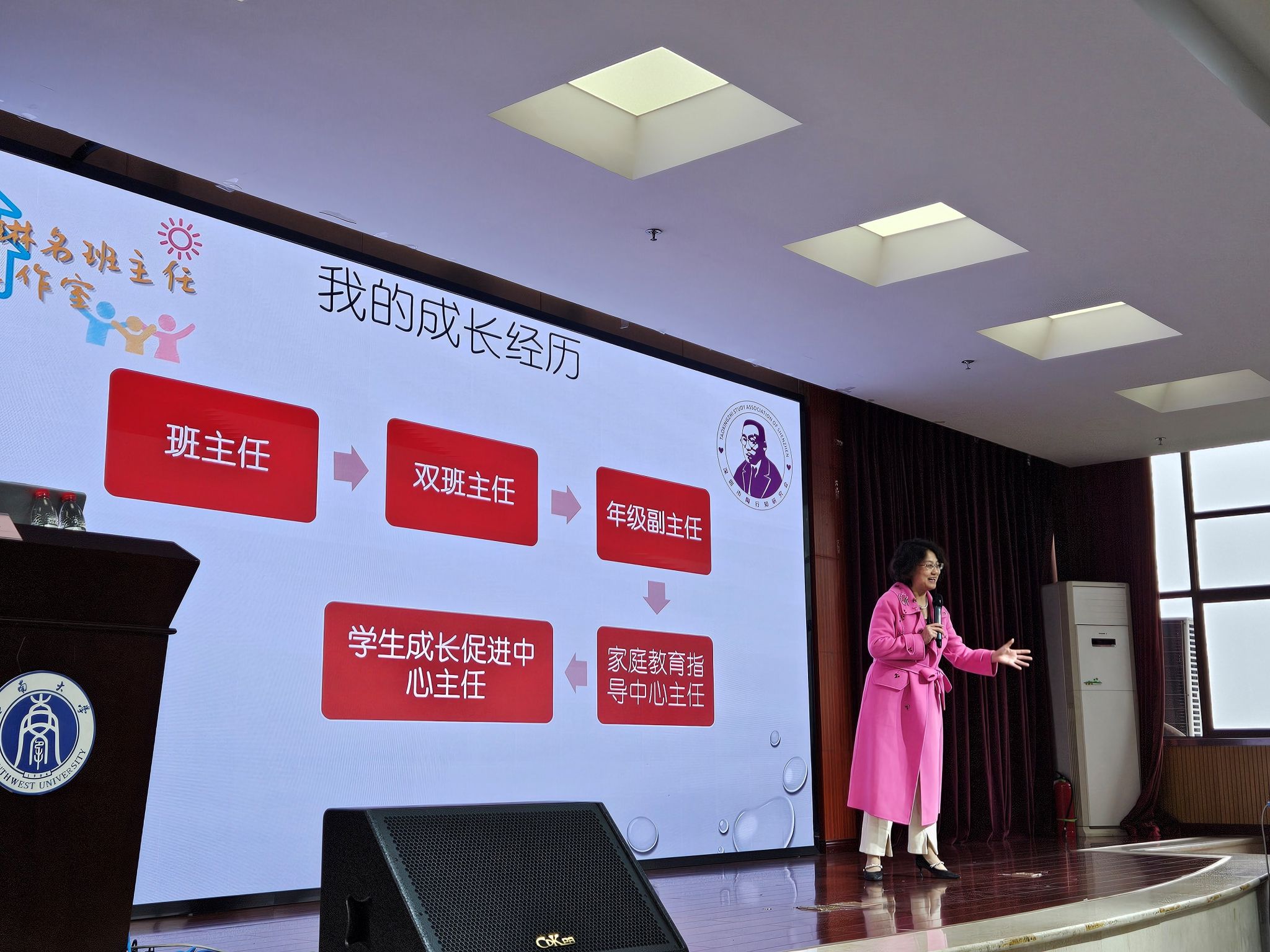 本次讲座李老师主要围绕班主任工作中的家校沟通问题展开,包括“名师分享”和“提问交流”两个环节。