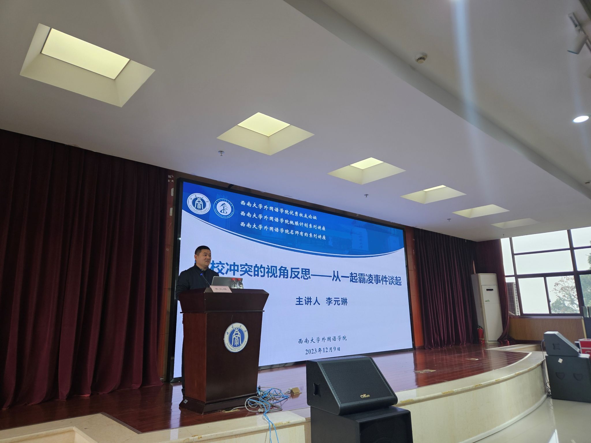为深入学习贯彻习近平总书记关于教育的重要论述,切实落实立德树人根本任务,2023年12月9日,学院优秀校友、深圳市名班主任工作室主持人李元琳应邀做客桃蹊计划名师有约讲坛,做了题为“家校冲突的视角反思——从一起霸凌事件谈起”的班主任工作专题辅导报告。讲座由学院党委副书记梅胜利主持,学院辅导员王翠玉参加了讲座。