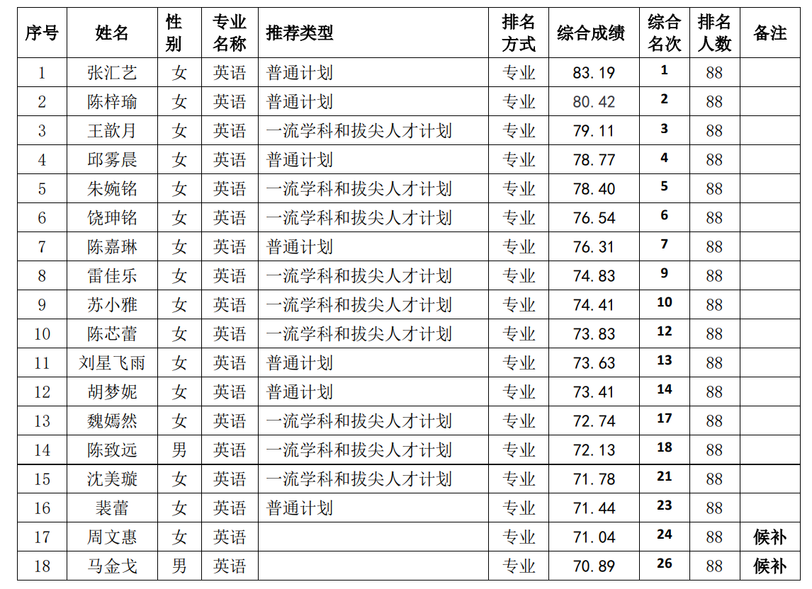 根据《教育部办公厅关于进一步规范和加强推荐优秀应届本科毕业生免试攻读研究生工作的通知》(教学厅〔2020〕12号),《永利集团推荐优秀应届本科毕业生免试攻读硕士学位研究生工作管理办法》(西校〔2017〕520号),《永利集团关于开展 2022年推荐优秀应届本科毕业生免试攻读硕士学位研究生工作的通知》和《yl9193永利集团2022年推免研究生工作实施方案》,yl9193永利集团推免工作组按照“公开、公平、公正”原则,对符合基本申请条件学生报名资格、加分奖励材料进行了审核和排序;结合学生本人申请,拟按从高到低顺序推荐张汇艺等26名同学为2022年推荐免试攻读硕士学位研究生人选,周文惠等11名同学分别为各专业、各类推免候补人选(信息表备注栏中标示“候补”)。经学院党政联席会审定通过,现将我院2022年拟推荐免试攻读硕士学位研究生人选信息公示。公示期为 2019年9月15日-9月25日。
