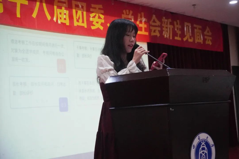 绩效考核制度、监察机制,这些略显抽象陌生的名词,因为团委副书记彭雅欣平实而严谨的解释,成为了清晰的记忆,留在新生干事们的心中。