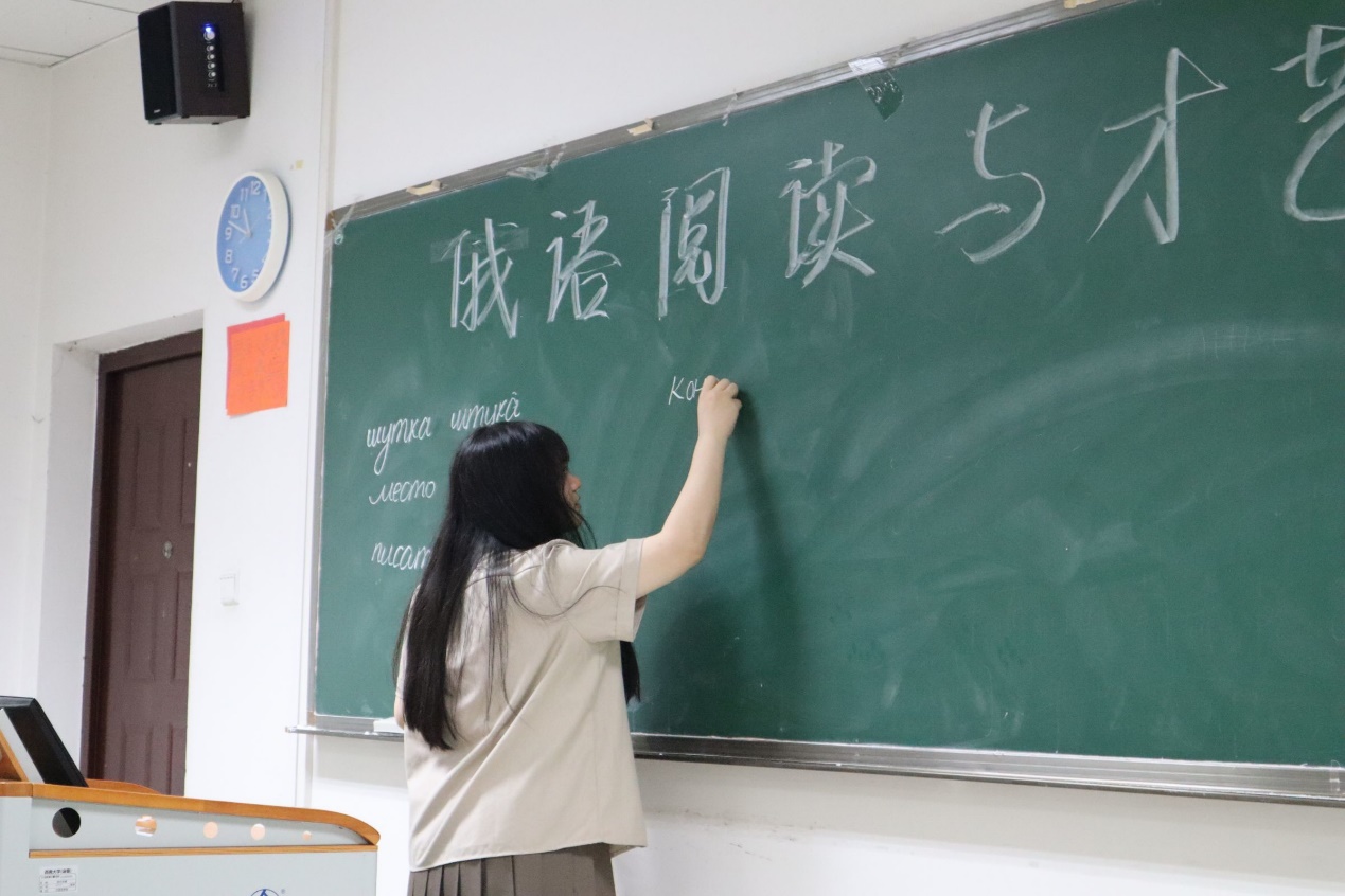 阅读技能大赛紧张刺激。本次阅读技能大赛分为单词听写、短文朗诵两个环节,由评委老师现场打分。紧张气氛中不乏趣味,同学们在台上展现了优异的俄语阅读技能。
